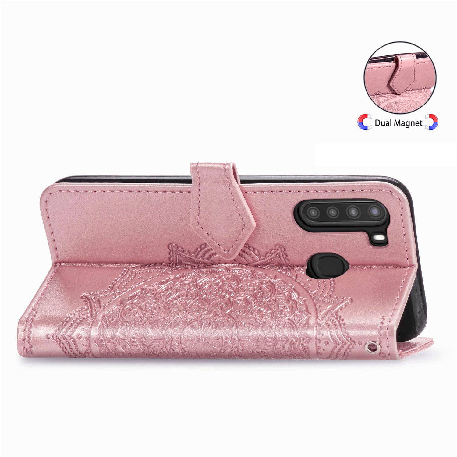 2022 Luxury Embossed Mandala Leather Wallet Flip Case for Samsung A21