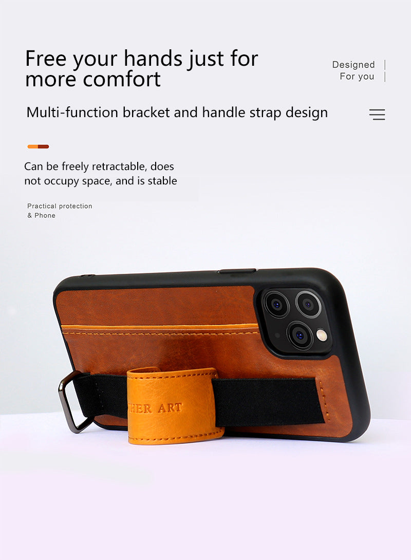 2022 Protective Leather Kickstand Wristband Case For iPhone
