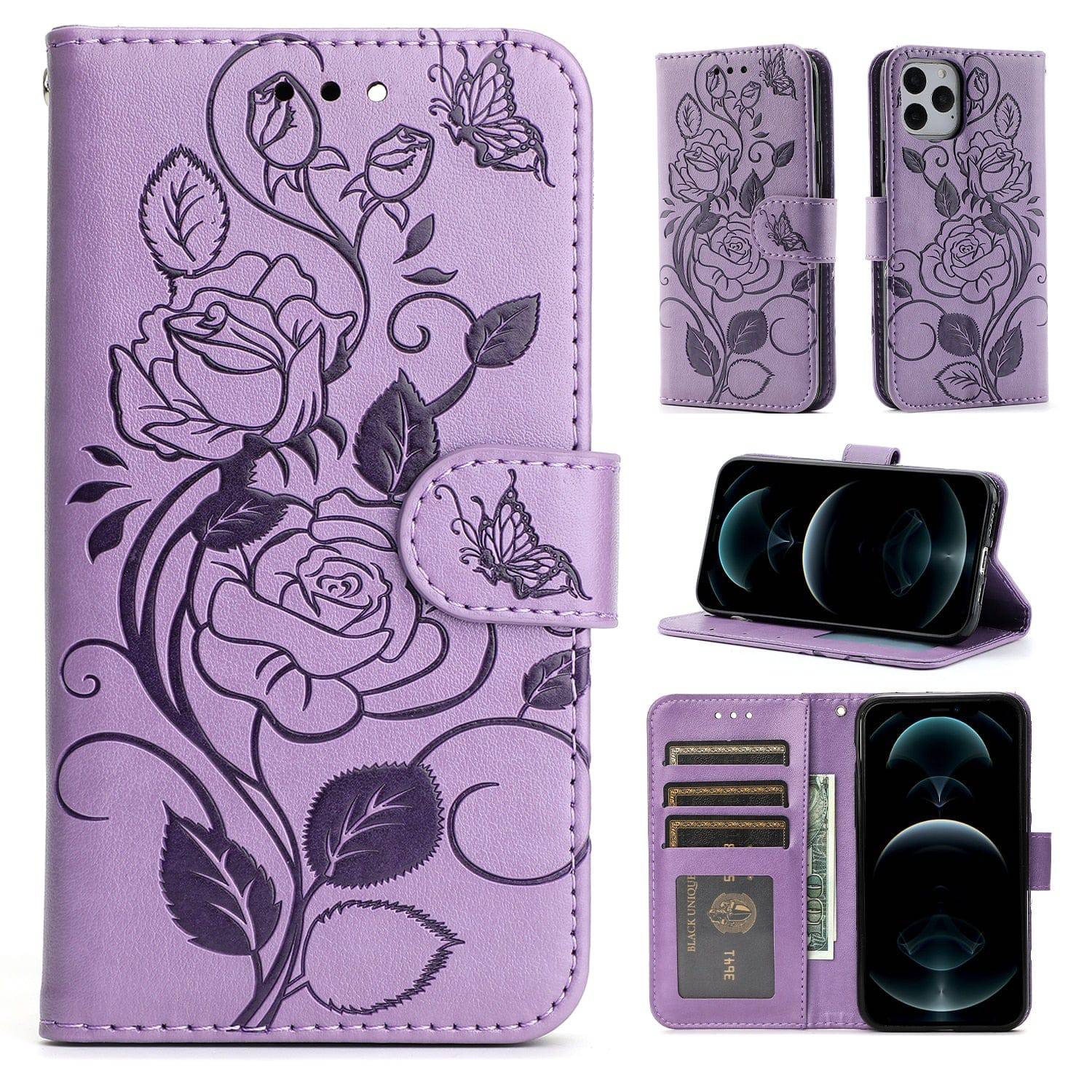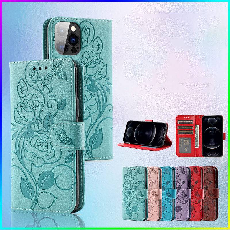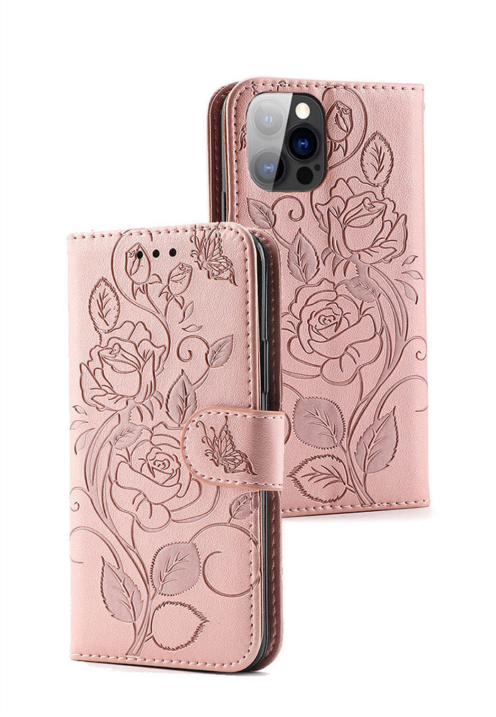3D Embossed Rose Wallet iPhone Case