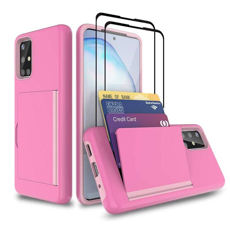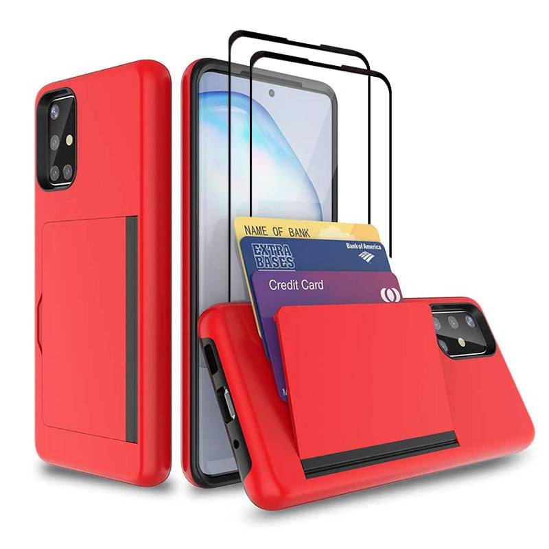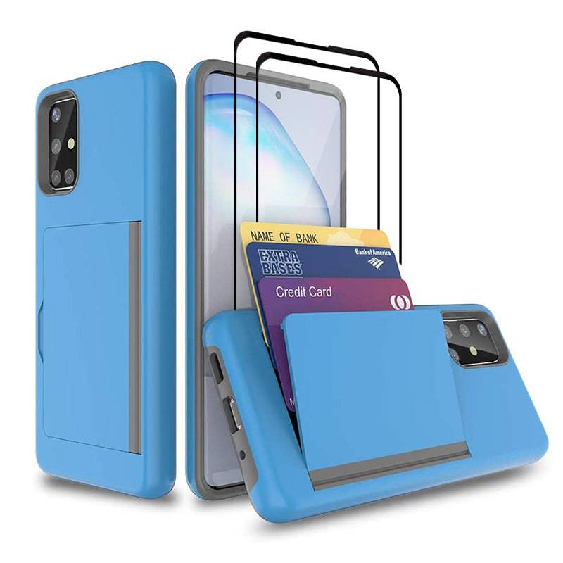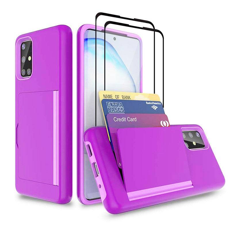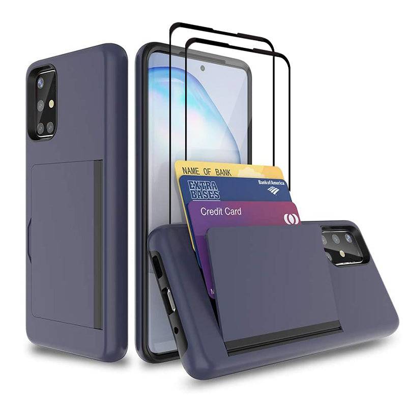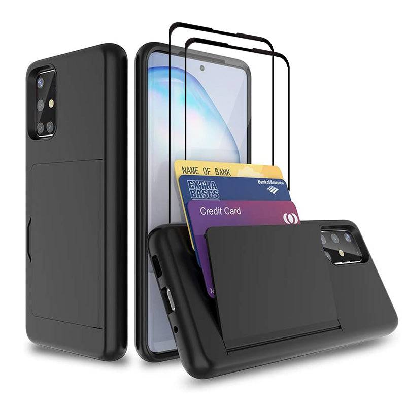 Armor Protective Card Holder Case for Samsung A Series With 2-Pack Screen Protectors