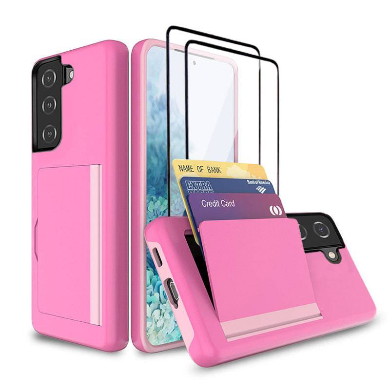 Armor Protective Card Holder Case for Samsung S21 FE(5G) With 2-Pack Screen Protectors
