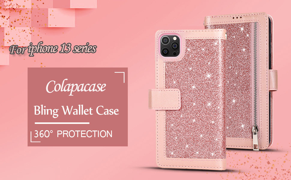 Bling Wallet Case with Wrist Strap for iPhone 13 Series