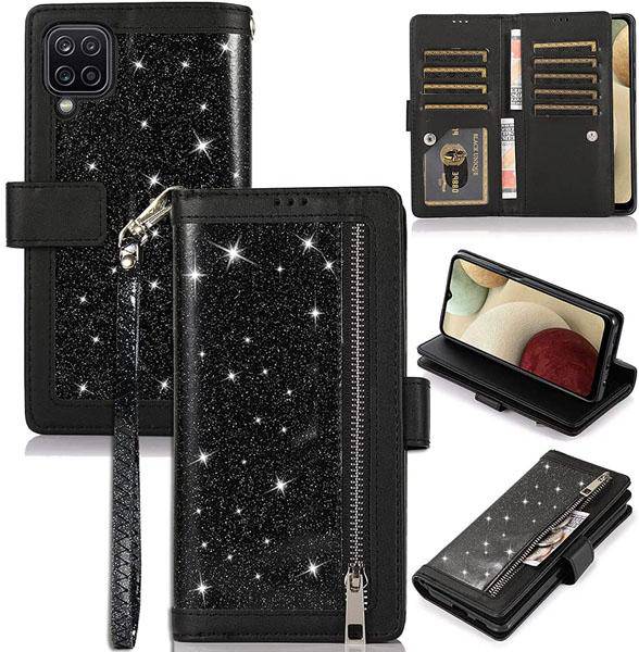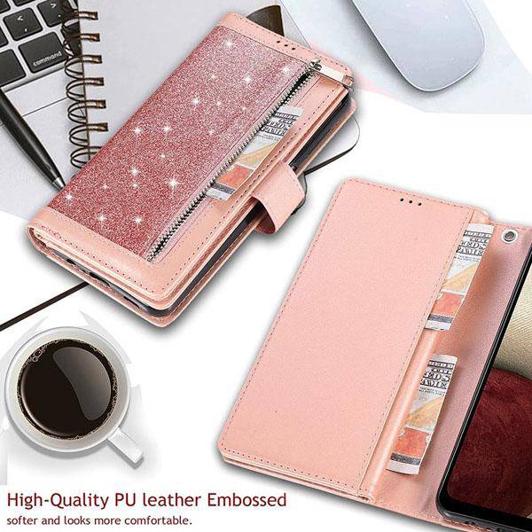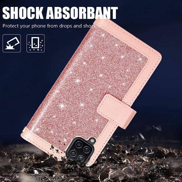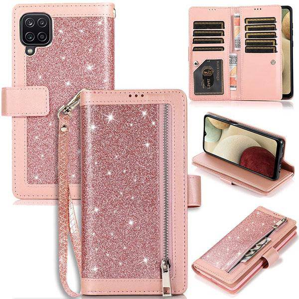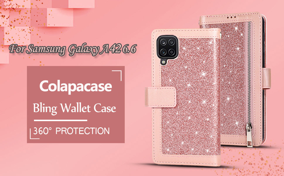 Bling Wallet Case with Wrist Strap for Samsung A42(5G)
