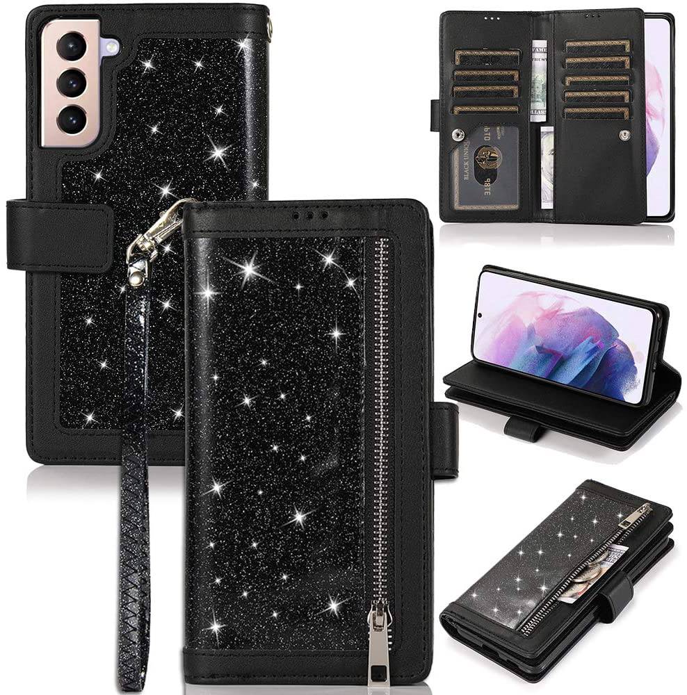FEATURES: ▶[COMPATIBLE WITH]: Specially designed for [Samsung Galaxy S22 5G.▶[LARGE CAPABILITY+WRIST STRIP]:Inside features 9 card slots,1 zipper coin pocket, 2... Read more Read more