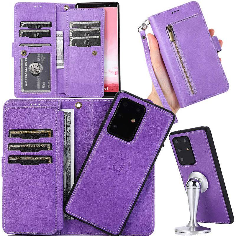 Detachable Flip Folio Zipper Purse Phone Case for Samsung S20 Series