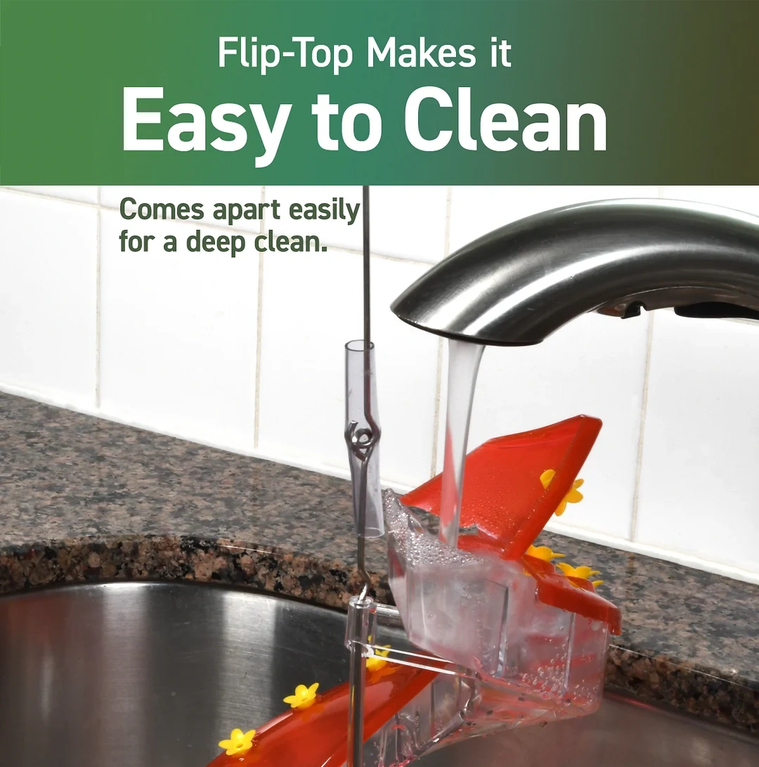 - Easy Clean — Quick-clean through flip-top; or feeder comes apart for a deep clean.