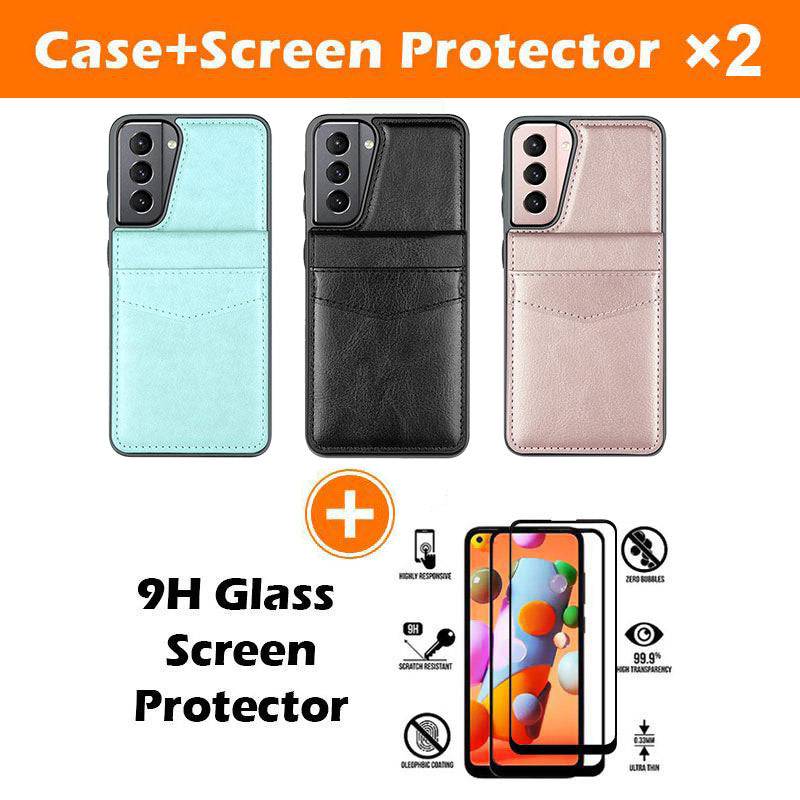 Dual Layer Lightweight Leather Wallet Case for Samsung Galaxy S21