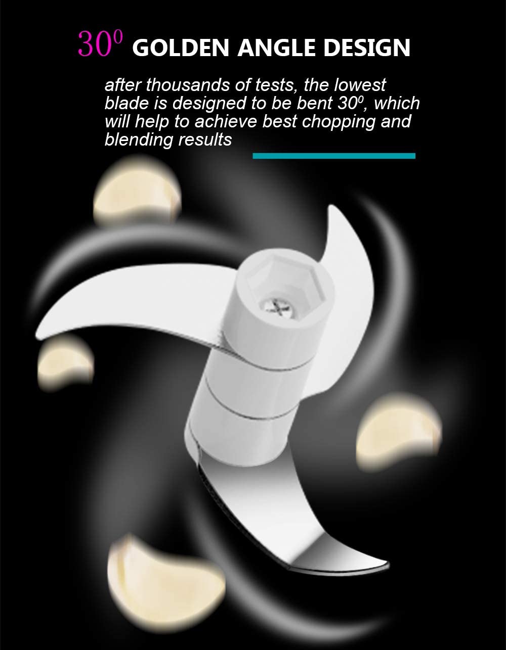- [Great Kitchen Helper] Our electric food chopper is with 3 reinforced blade, it will not only help you chop garlic, ginger, peppers, vegetables, fruits, Saving time and effort.
