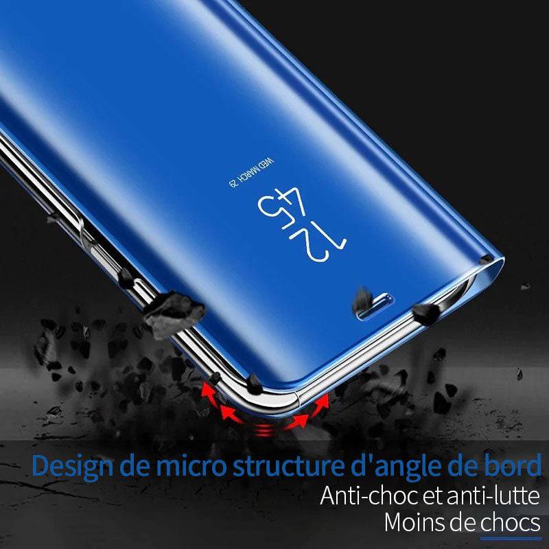 Caractéristique: coque de téléphone avec miroir transparent pour fenêtre en cuir PU de luxe