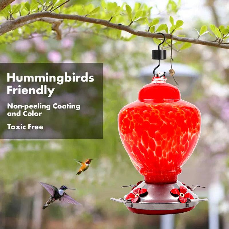 Hand Blown Glass Hummingbird Feeder - 38 Ounces