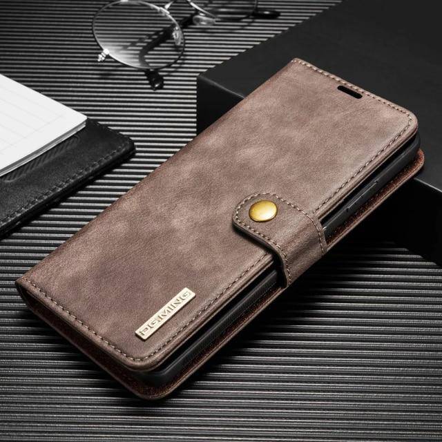 3. This case features 2-in-1 design with a split leather wallet cover and a detachable leather coated back case.