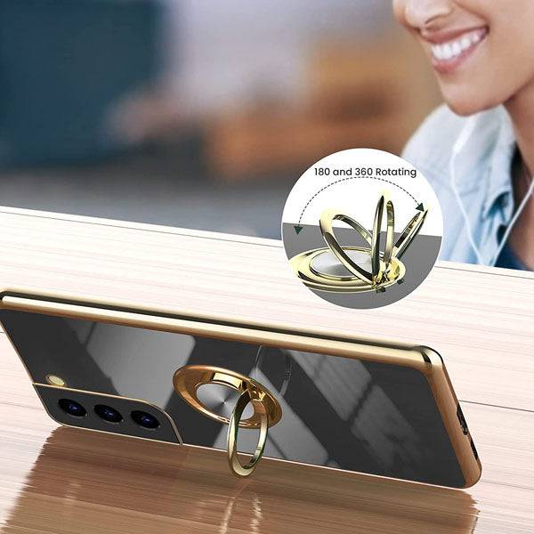 Shiny Plating Built-in Finger Ring Case For Samsung S21 FE