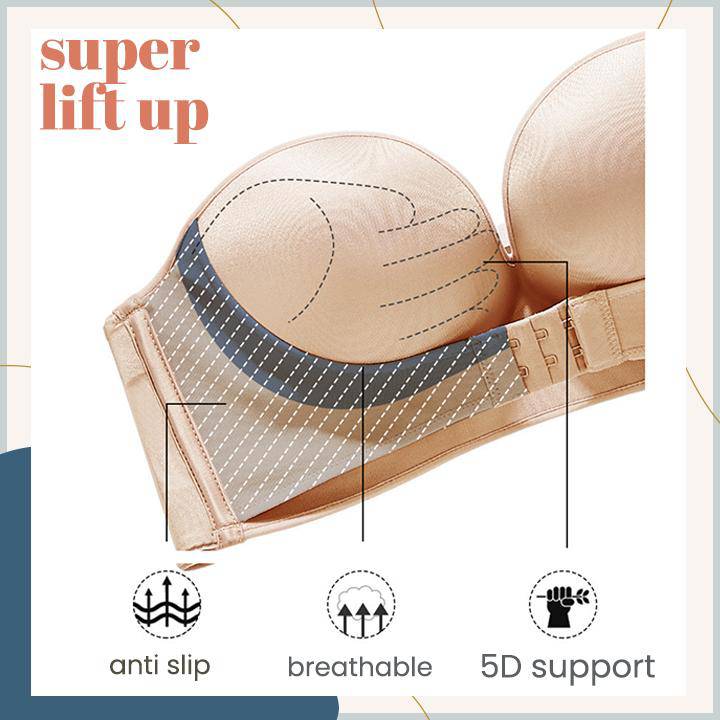 Perk up your bust with the Strapless Front Buckle Lift Bra! It gives any chest size lift and support for a perkier look with deeper cleavage while staying completely hidden under any outfit.
