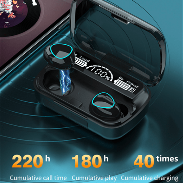 The wireless charging case delivers 120 hours of battery life to keep you and your Headphones on the go. After each charge your Headphones will last 5-7 hours!