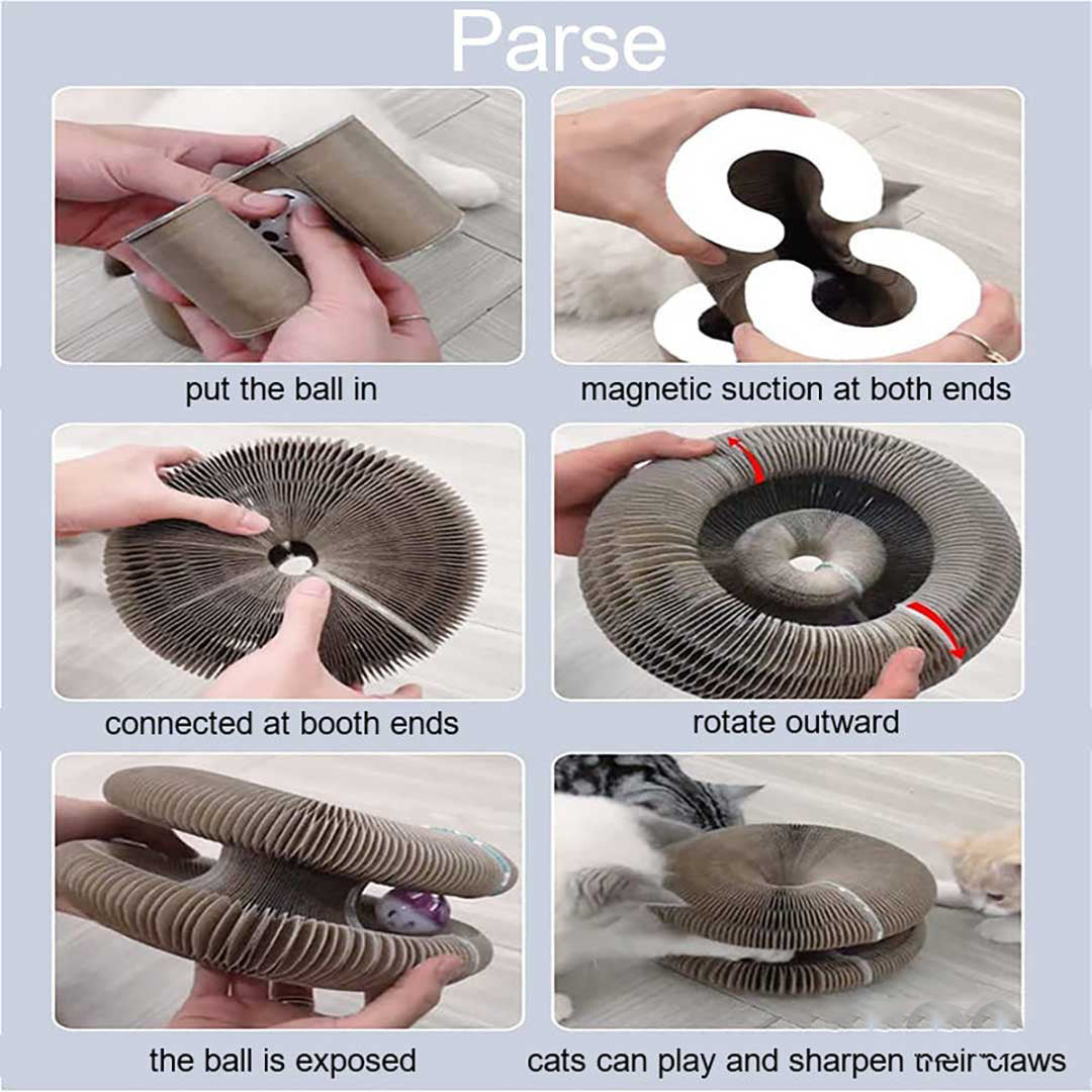 -Multi-Use and Entertainment: This scratching board can be used as a bed or folded into a bone shape. It also has a bell-shaped ball built into the middle of the board that makes a pleasant tinkling sound when rolled.