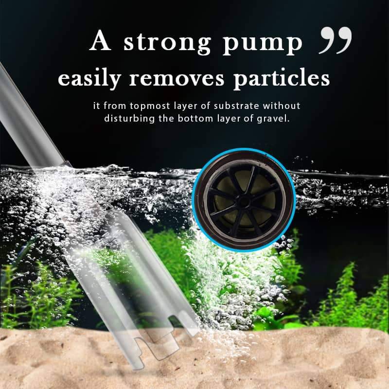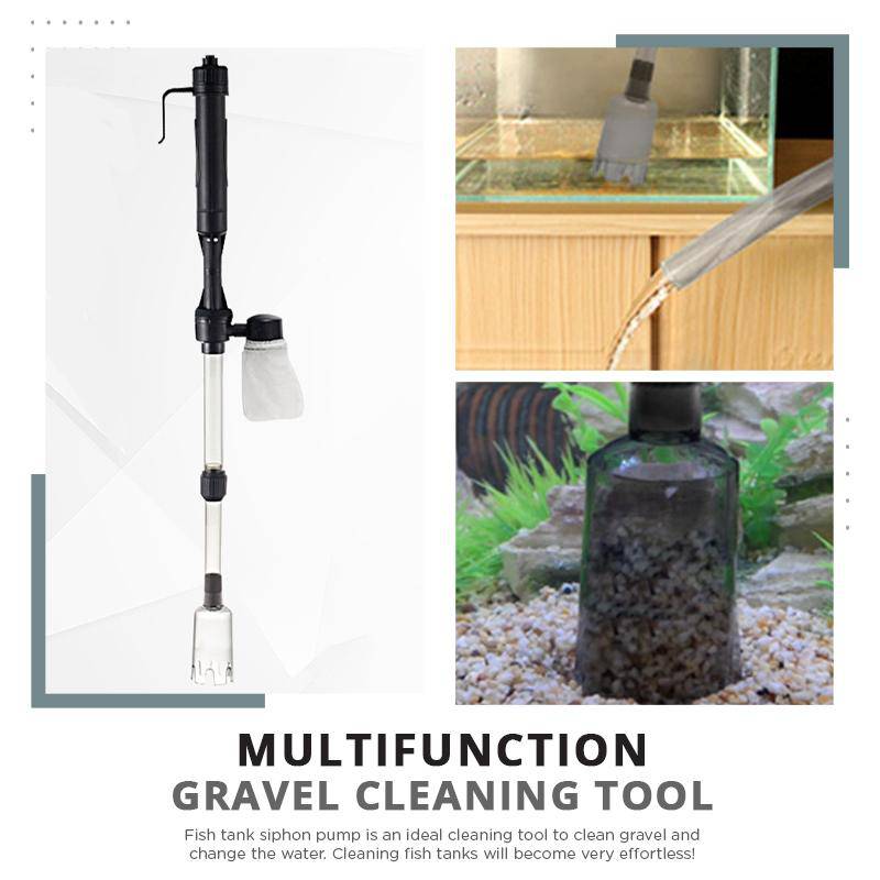 - No more worrying about your dirty fish tanks, now suck up any debris in your aquarium tank with this Electric Aquarium Gravel Cleaner like fish feed, fish poops, or dead water plant leaves. The filter bag is specially designed for soft rotten debris underwater, no debris comes back to your fish tank.